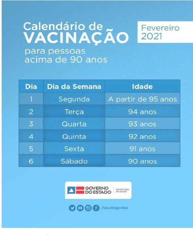 De acordo com o prefeito, a imunização de idosos acima de 90 anos será concentrada em dois pontos: no 5º Centro e no Atacadão no Subúrbio. “O processo de vacinação será nestes dois locais. A tendência é que será muito rápida a vacinação. Serão 7 mil pessoas escalonadas por dia na campanha”, afirma Bruno Reis. Já aqueles idosos que não podem se locomover, serão vacinados em casa, através do ‘Vacina Express’. Para isso é preciso fazer um agendamento no site, são 70 vagas por dia.