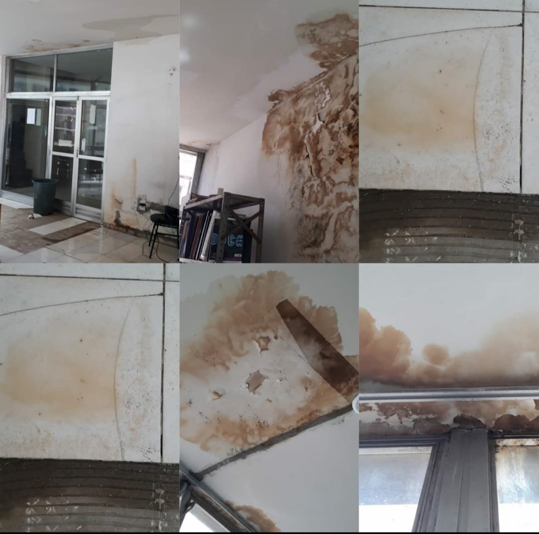 “Há risco estrutural e humano, uma vez que a qualquer momento partes do teto podem desabar ou uma pessoa pode tomar choques elétricos”, reclama.