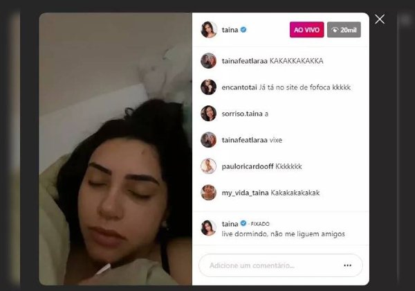 Tainá Costa faz live dormindo e alcança 20 mil pessoas