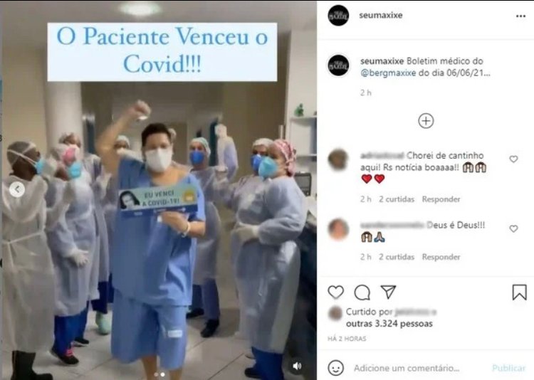 Na postagem, o cantor aparece em um vídeo ao lado da equipe médica, comemorando a alta hospitalar. O artista testou positivo para a Covid-19 e acabou internado na última terça-feira (1º). A unidade de saúde não teve o nome divulgado.