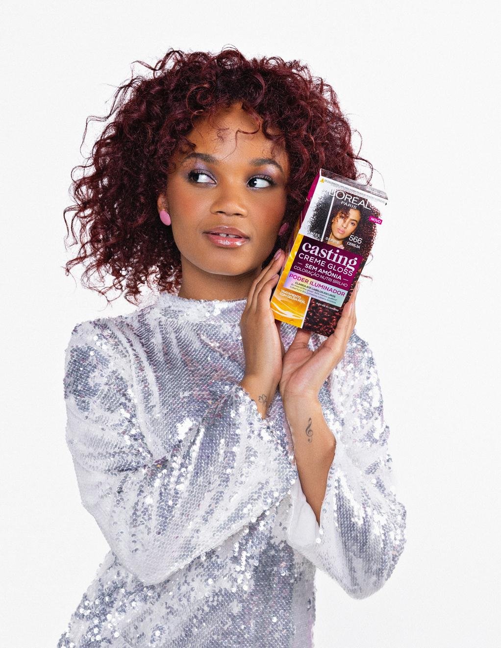 Agnes Nunes, jovem cantora que encantou e conquistou o coração do Brasil com sua doce voz e canções poéticas, transformou seus cachos com Casting Creme Gloss Poder Iluminador, lançamento de L’Oréal Paris. A coloração sem amônia nº1 do Brasil que proporciona 4x mais brilho aos fios, na tonalidade 566 Cereja.