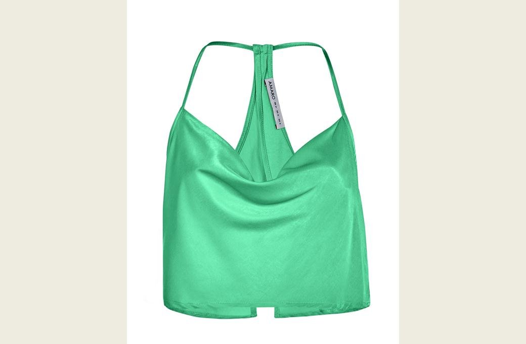 As peças em cetim, tecido mais sofisticado e que torna o outfit mais elegante, ganharam a cena novamente nas redes sociais e também estão presentes na coleção, com tops decotados nas costas e vestidos. São itens mais básicos que podem ser usados em qualquer momento.