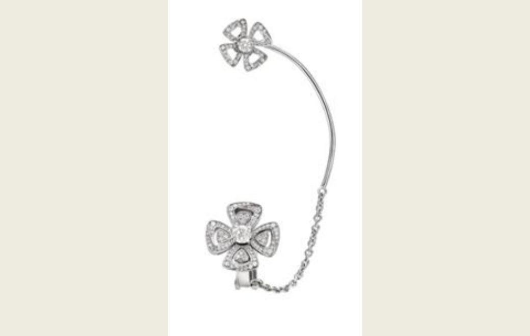 Brinco único Fiorever em ouro branco 18 kt cravejado com dois diamantes centrais e um pavê de diamantes