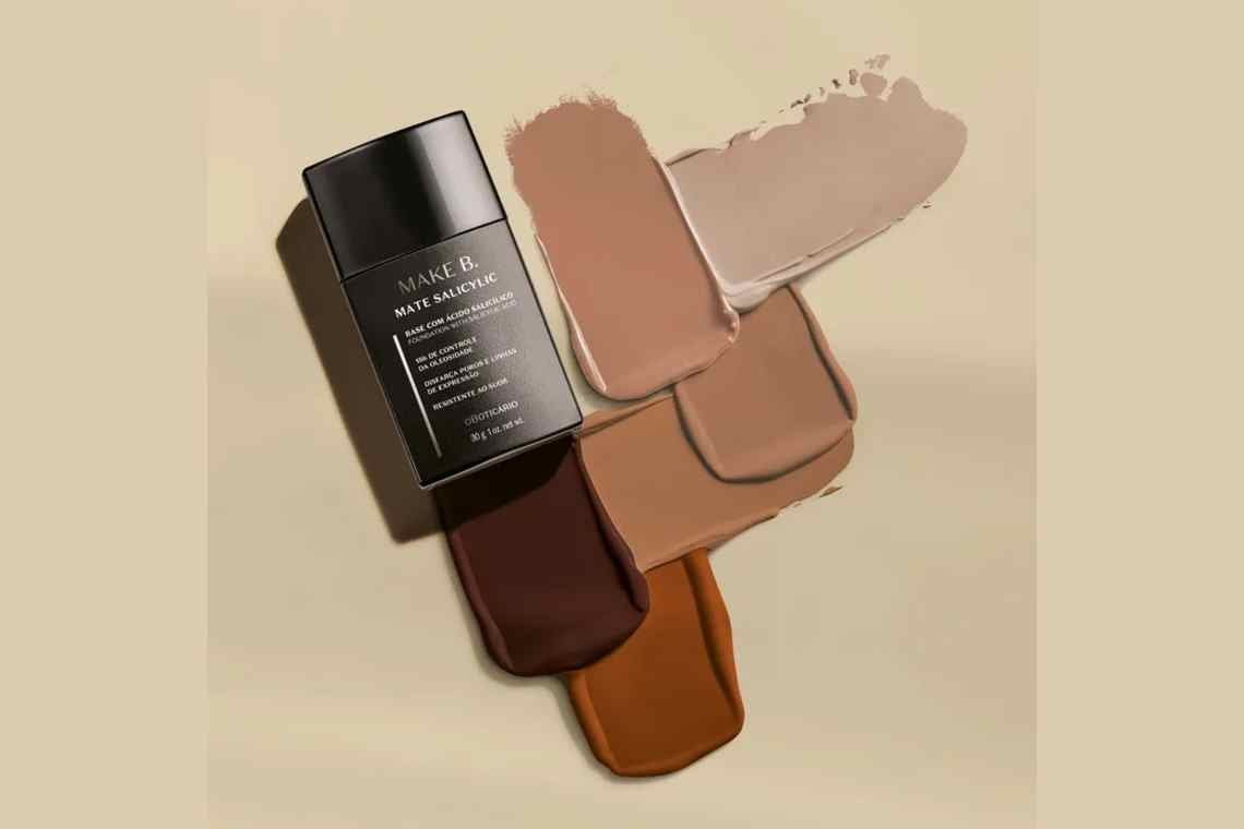 A Base Make B. Mate Salicylic chega em 24 tons, sendo quatro subtons – frio, quente, neutro e oliva, desenvolvidos a partir de um estudo em parceria com a Escola Madre, promovendo mais diversidade no portfólio da marca.
