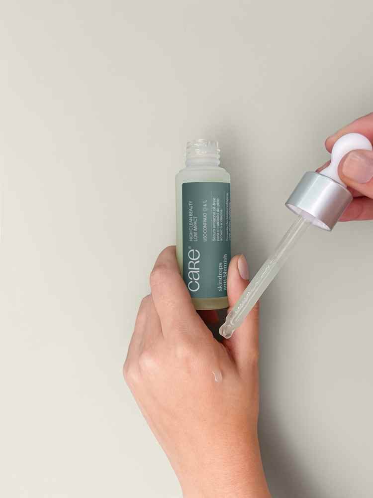Modo de aplicação: aplique de 4 a 6 gotas na palma das mãos após a rotina de limpeza facial. Com a pele seca, aplique todo o produto sobre o rosto, pescoço e colo, e pode ser usado pontualmente na espinha como secativo. É indicado tonificar a pele com CARE Mist ou tônico facial de sua preferência.