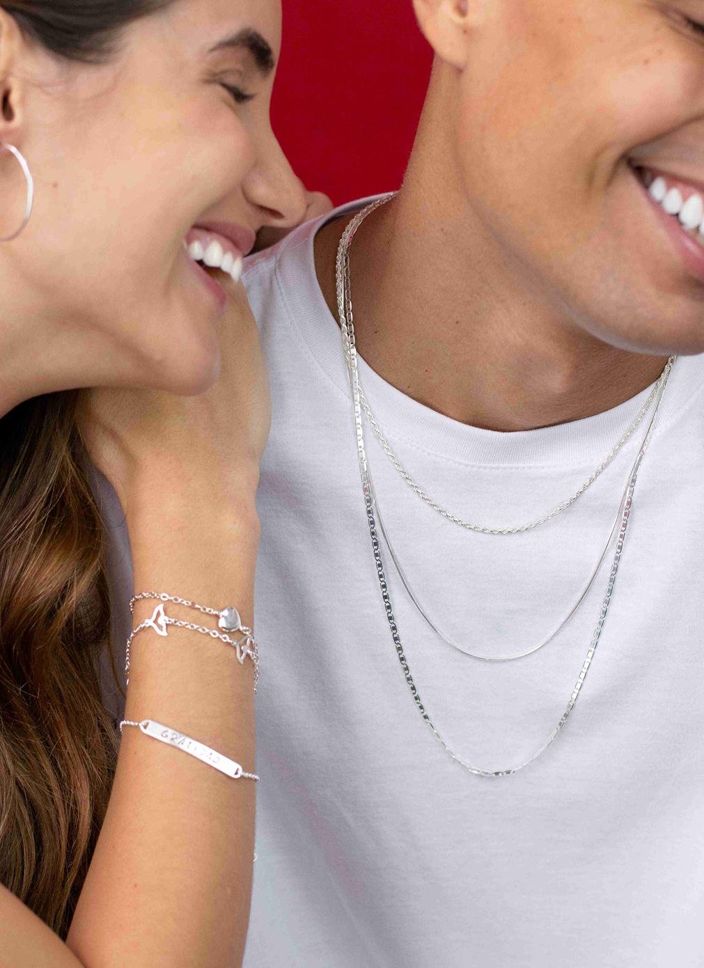 Na campanha Namorados, o casal usa peças que podem ser usadas na combinação de looks mais usual ao sofisticado. Na feminina destacam-se colares com símbolo do infinito, corações, pulseiras e outras peças que representam bem a delicadeza da mulher. Para os homens, as sugestões são objetos como correntes, escapulários e pulseiras de todos os estilos.