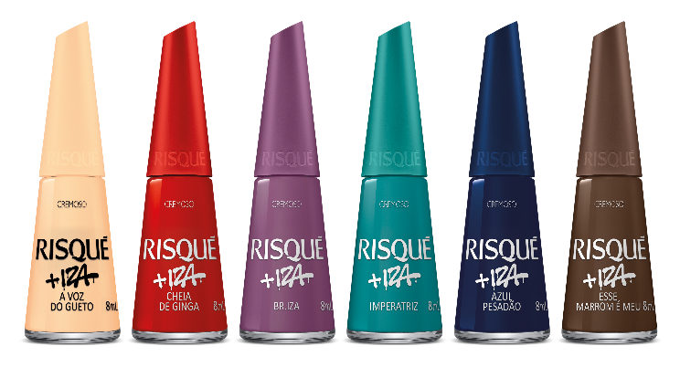 A Risqué em parceria com a cantora Iza, anuncia o lançamento da coleção Risqué + IZA, transmitindo em seis tonalidades que representam a trajetória da artista e os valores da marca.