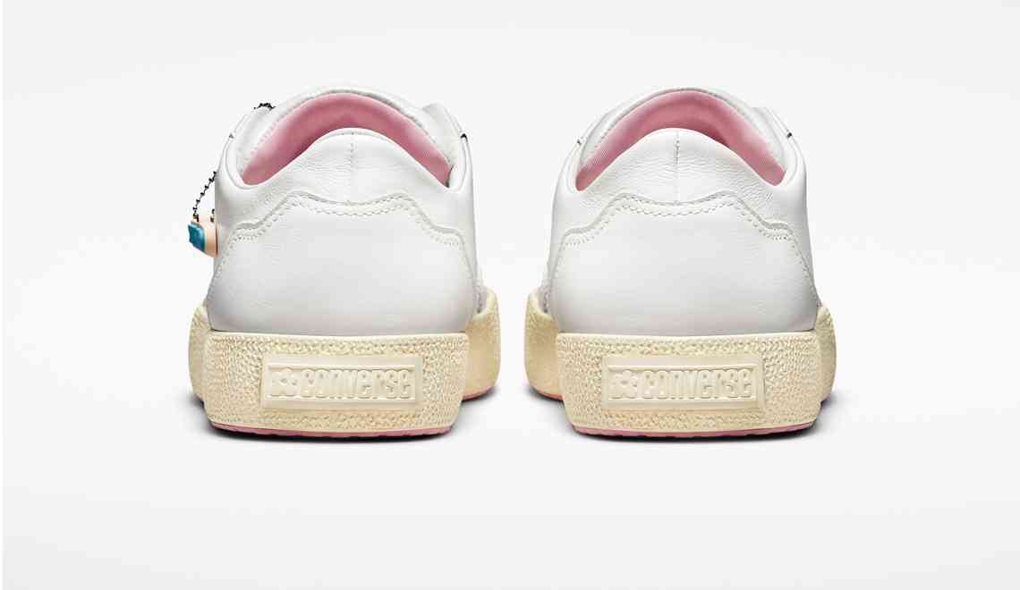 Neste modelo, o motivo floral característico da Converse x Golf le Fleur* é substituído por um color blocking de diferentes tons de branco e a lona da parte superior é trocada por couro, o que reforça o seu aspecto premium. Por outro lado, a nova versão do GLF 2.0 mantém a referência aos modelos da Converse pensados para as pistas de skate, outro detalhe muito presente no histórico da collab, tendo sua silhueta baseada nas linhas do Converse Pro Leather.