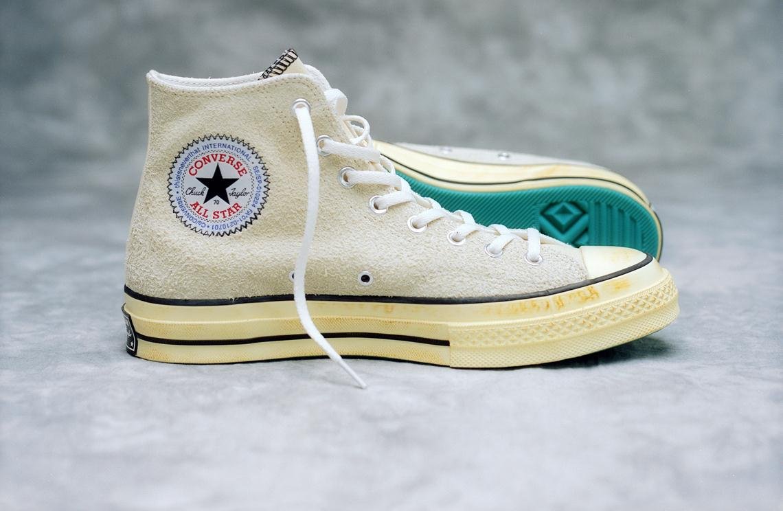 Já o modelo Chuck 70 é feito em suede, tecido com toque de camurça, e a mistura de texturas dele com as das laterais da sola de efeito envelhecido traz o estilo das ruas, o que complementa os detalhes atemporais do e torna essa versão a mistura ideal entre o novo e do antigo.