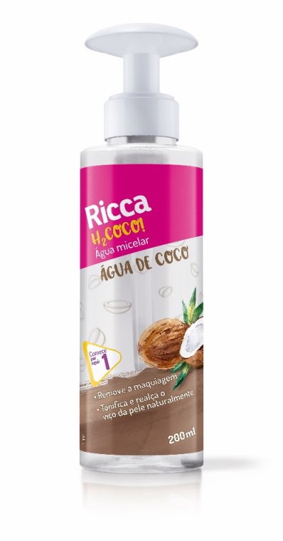 A água micelar Ricca H2COCO! com água de coco é perfeita para remover a maquiagem e as impurezas da pele. Ela faz a remoção sem agredi-la, hidrata e acalma!