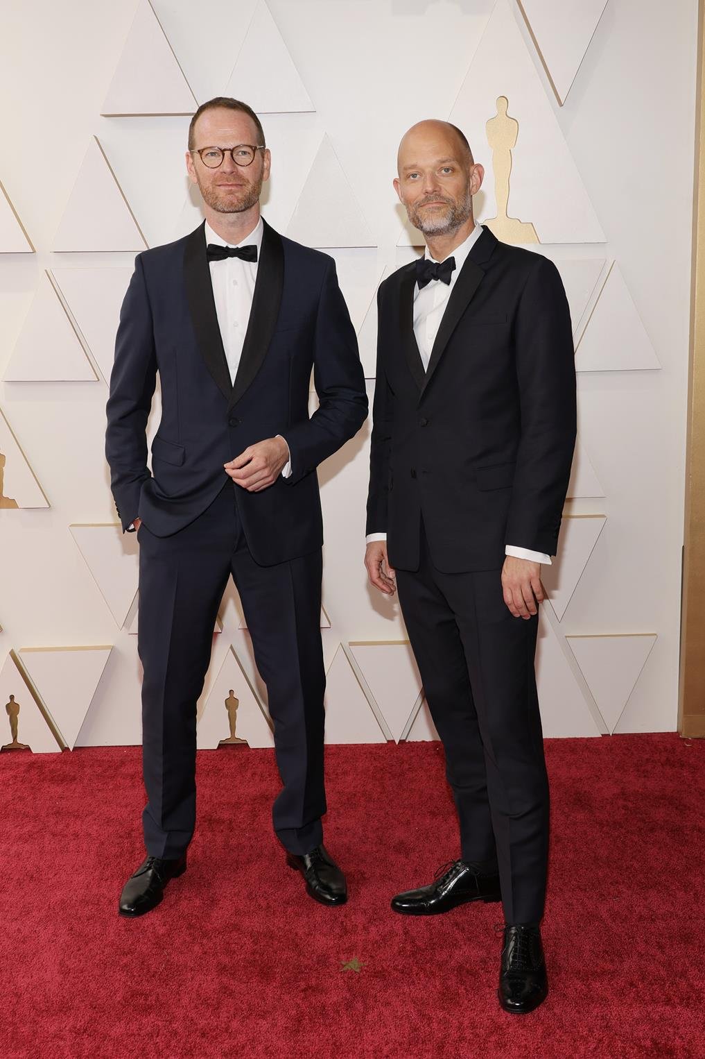 Eski Vogt, indicado a Melhor Roteiro Original por “A Pior Pessoa do Mundo”, usava um smoking de lã mohair marinho com lapelas pretas, combinado com uma camisa de popeline branca, gravata borboleta de seda preta e sapatos de couro preto.