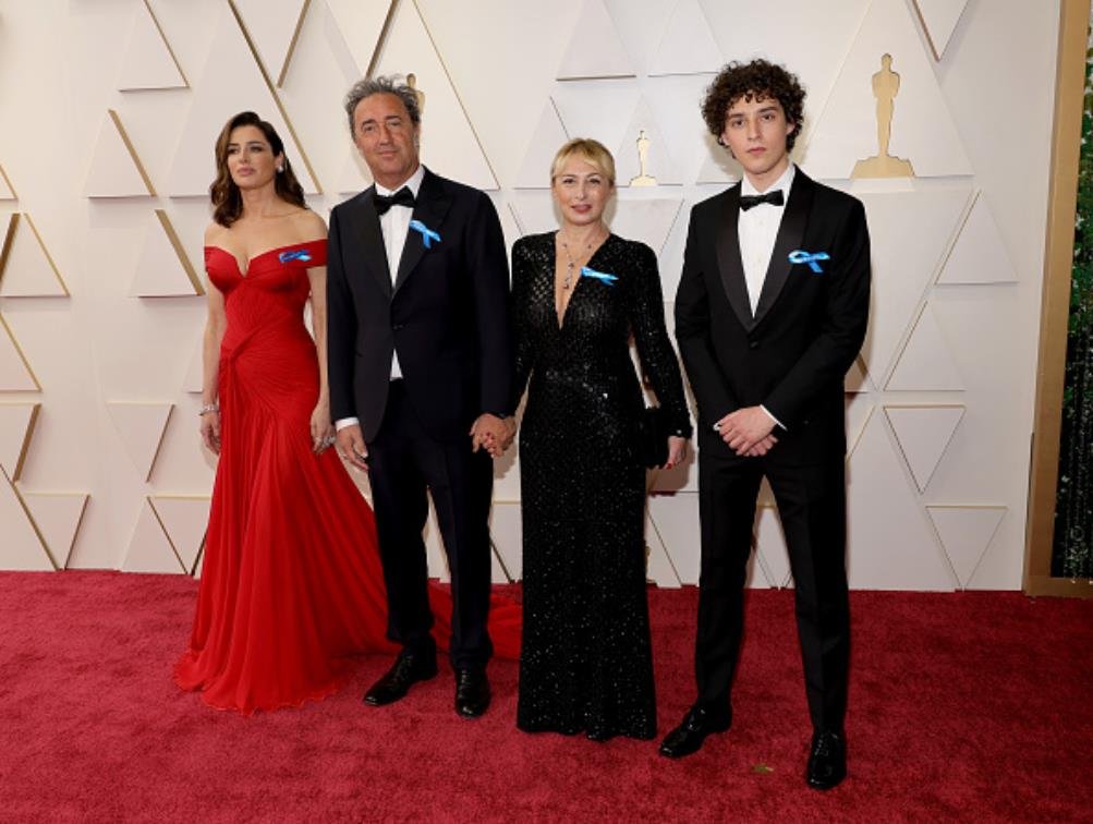 Joachim Trier, indicado na categoria Melhor Roteiro Original e Melhor Longa-Metragem Internacional por “A Pior Pessoa do Mundo”, escolheu um smoking de lã mohair azul com lapelas de seda preta, combinado com uma camisa de popeline branca, gravata borboleta de seda preta e sapatos de couro preto.