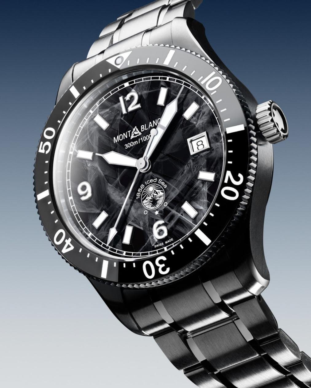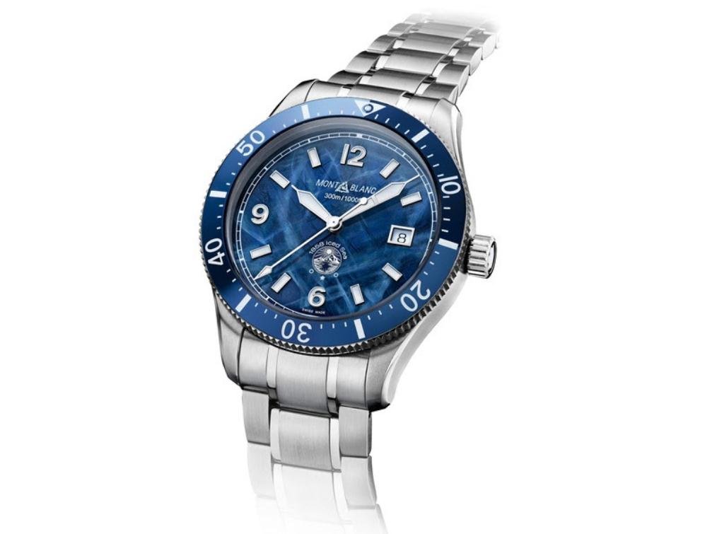Quando pensou em criar um relógio esportivo de mergulho, a Montblanc não foi para as águas tropicais do mundo em busca de inspiração, mas subiu até os lagos glaciais do Maciço Mont-Blanc. Subindo pelo Vale de Chamonix até o Mer de Glace (Mar de Gelo), os designers da Maison foram cativados pela textura do gelo glacial com sua rede entrelaçada de cristais que foram congelados no tempo por milênios.