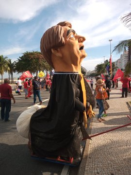 A manifestação já ganhou as redes sociais e a hastag ‘Bicuda no Bozo’ figura no topo dos assuntos mais comentados. São mais de doze mil tweets sobre o assunto desde as 14h, quando o boneco chegou no calçadão de Copacabana.